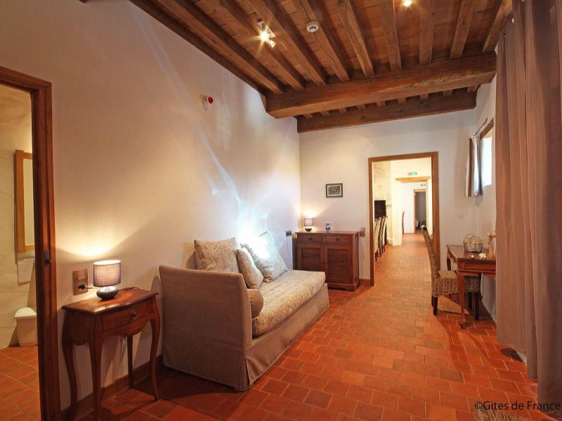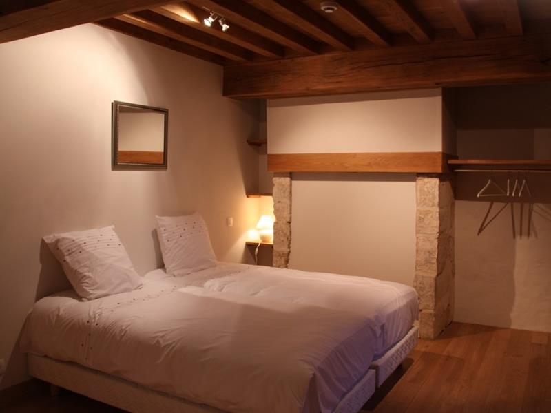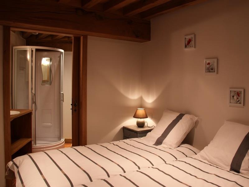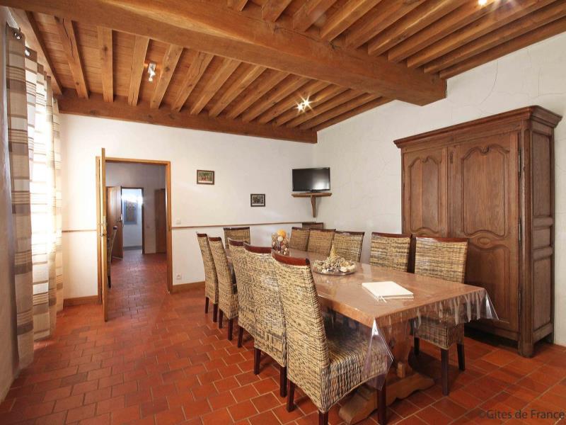 Ancienne abbaye du 17ème siècle entièrement restaurée, mitoyenne à une salle de réception. RDC : entrée (4 marches), cuisine, séjour, 1 chambre (1 lit 2 pers. 160×190 cm) avec salle d’eau/wc privatifs, 1 chambre (2 lit 1 pers. 90×190 cm) avec salle d’eau/wc privatifs accessibles aux personnes handicapées avec seconde entrée indépendante par rampe d’accés. Etage par 2 escaliers : 1 chambre (2 lits 1 pers. 90×190 cm, canapé lit), salle d’eau/wc, 1 chambre (1 lit 2 pers. 90×190 cm), 1 chambre (2 lits 1 pers. 90×190 cm), 1 chambre (2 lits 1 pers. 90×190 cm), salle d’eau, wc, 1 chambre (2 lits 1 pers. 90×190 cm) avec salle d’eau privative. Draps inclus. Chauffage central. Buanderie en sous sol. Jardin clos de 1500 m². Location possible de la salle communale sur place pour 180 pers. = 520 € Borne de recharge pour véhicule électrique à 100 mètres dans le bourg.