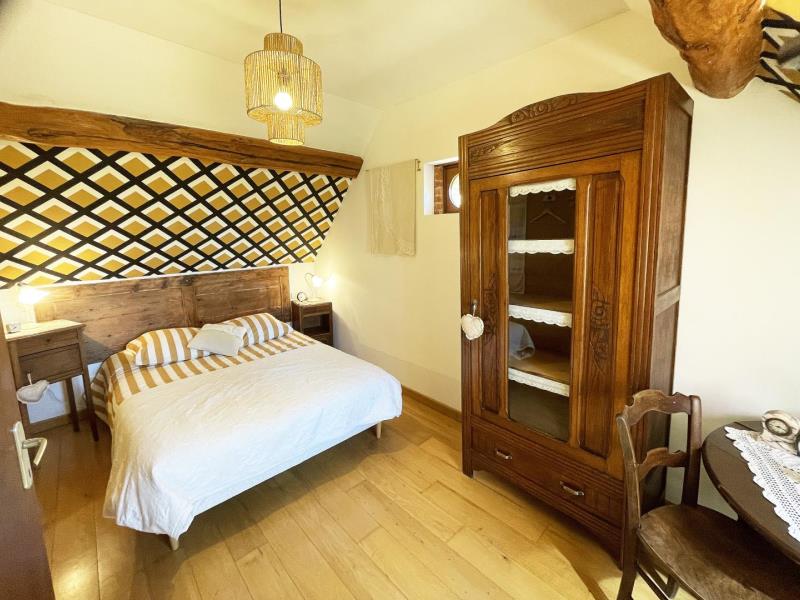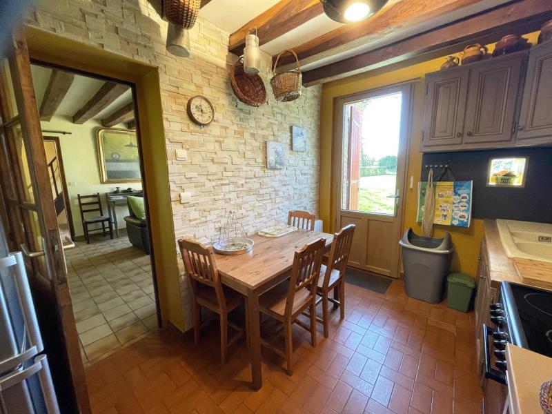 Maison de Pays et indépendante dans hameau tranquille . Rez de chaussée : salon , cuisine, séjour-véranda, salle de bains avec wc, 1 chambre (1 lit 2 personnes). Etage (escalier type meunier ): 1 chambre (1 lit 2 personnes), 1 chambre (2 lits 1 personne), 1 lit bébé, salle d’eau avec wc privatif. Chauffage électrique. Terrain non clos.