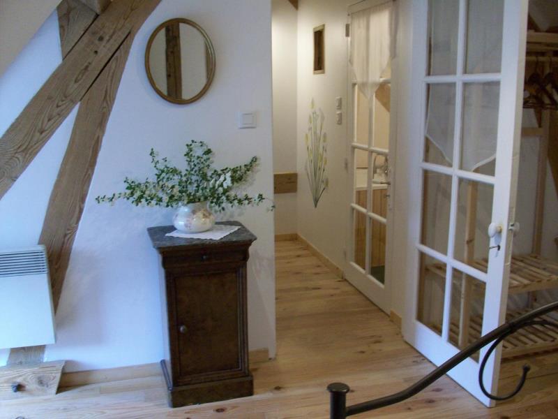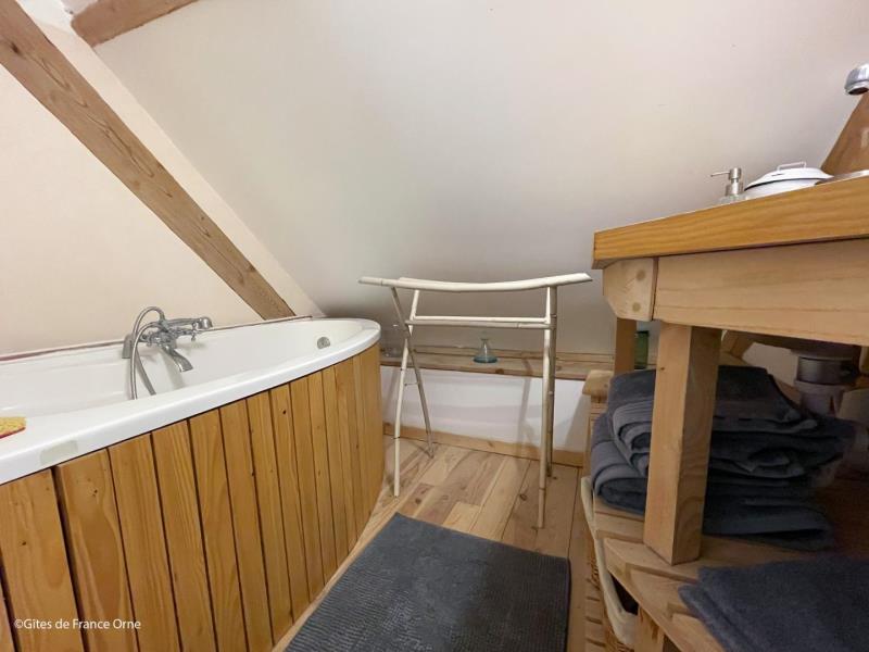 Chambre d’hôtes comprenant au rez de chaussée un accueil avec espace pour le petit déjeuner. A l’étage : une chambre mansardée avec 1 lit de 2 personnes, salle de bains et wc indépendants. Chauffage central fuel. Salon de jardin.