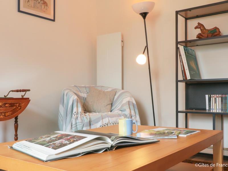 Maison ancien entièrement restaurée. Rez de chaussée : Grande pièce de vie avec cuisine aménagée ouverte sur le séjour, salon/salle à manger. Salle d’eau avec wc Étage : Une chambre avec un lit double 160×200 cm Un demi étage en mezzanine avec un coin bureau Terrasse close de 40 m2 avec barbecue et salon de jardin. Balade autour du gîte dans les prés au sein de l’élevage et le propriétaire peut vous proposer une visite des écuries. L’ensemble du site et le gîte sont non fumeurs. Les chiens sont acceptés mais doivent être tenus en laisse en dehors de la terrasse close.