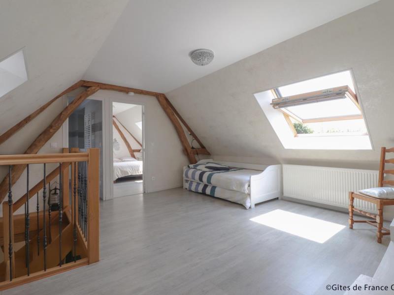 Longère mitoyenne au propriétaire en formule tout inclus : – Rez de chaussée : cuisine, séjour et espace salon avec TV chambre (lit fait double 140 x 190 cm), salle d’eau, wc indépendant et buanderie. – Etage : palier (lit gigogne 90 x 190 cm pour 2 personnes) chambre (lit fait double 140 x 190 cm), chambre (lit fait double 140 x 190 cm), salle de bains avec wc. Jardin non clos avec pièce d’eau non close. Maisonnette enfants. Possibilité local vélos. Petit chien accepté sur demande.